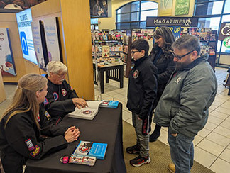 Despite a Spring snowsnow, it was a continuous line of people looking to meet Grandmaster Crandall and Master Crandall. Throughout the day they handed out collectors cards, chatted with community members, told stories, and signed books.