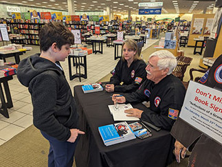 Grandmaster Crandall and Master Crandall signed books throughout the afternoon, but they were assisted by Headmaster Eric Stalloch, Master Gisella Stalloch, and Sensei Sabrina Crandall for set up, picture taking, and more.